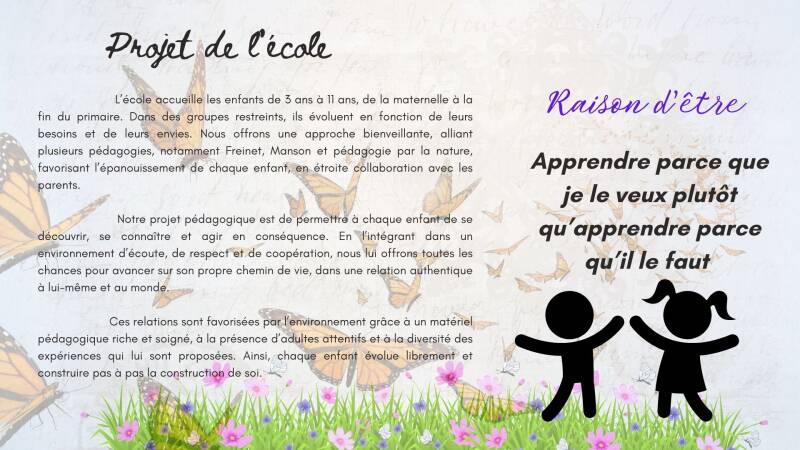 Située à Grateloup Saint Gayrand, Les co-papillons est une école privée alternative qui propose une approche éducative innovante, centrée sur l'enfant et son développement global.